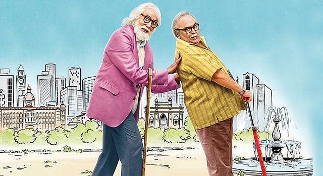And yet, a part of me was grateful that a film about two ordinary, old men exists. Cinema, the world over, is obsessed with youth and beauty. We don't see wrinkles and failing bodies often enough. It's almost as if filmmakers have made a pact to pretend that we aren't all heading to this stage. It's refreshing to note that one of the brand partners here is an adult diaper brand. What's less pleasing is that this is an entirely male universe. Female characters are mentioned but we don't see them. We see a maid but she doesn't have a single dialogue.