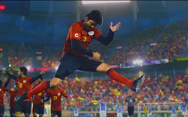 Which isn't to say it's health food, either. A truly imaginative filmmaker could have really made something out of this premise. Atlee's idea of scale is to allow cinematographer GK Vishnu go super-wide, so that we can marvel at how much is packed into each frame. After a while, with the football matches, a sense of sameness sets in. But the emotional through-line is clean and uncluttered, and the twists in the screenplay — little flashbacks that reveal a little more information — are decently thought through. And for a film of this nature (where, usually, anything goes), the positioning of songs is nicely done. 'Singappenne' comes at just the right moment. The preceding scenes build up to it and the song just explodes.