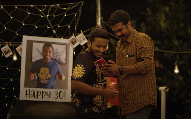 It's important for Jaan-E-Mann to have begun by making us feel his crushing isolation because it is eventually a film about human connections and two of life's biggest events—birth and death. Which is what happens when Joymon decides to travel back home to make sure he has people to celebrate the milestone with. He convinces old friend Faizal (Ganapathi, also co-writer) and acquaintance Sampath (Arjun Ashokan) to host the party and agrees to take care of the expenses. The venue is Sampath's terrace but what makes the film an original work is what happens in the house right opposite to theirs. So when his elderly neighbour kicks the bucket hours before Joymon's big party, we're primed for intense drama and even darker comedic set pieces.