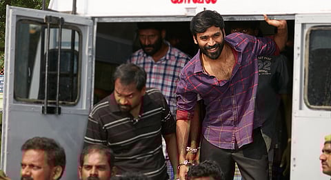 Two first look posters were officially launched today morning. While the first poster features Dhanush getting out of a police van, in custody, the second presents a thrilling, adventurous setting in the sea with an intense looking Dhanush in the thick of action.