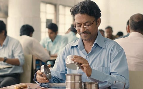 Irrfan presents Saajan's introversion with restraint and naturalism. Walking through the Mumbai streets, riding through the crowded local trains, and working in his office, he presents a highly convincing portrait of a salaried man who likes to keep to himself. Irrfan elevates Saajan's character with subtle enhancements to bring out his idiosyncrasies. Think of the scene where Saajan receives a letter for the first time. The way Irrfan looks around to notice whether anyone is looking at him, a mix of awkwardness and a feeling of being caught up in mischief reveals much subtext. The time he visits his colleague's house and mentions Ila as his girlfriend, the same mischievous smile shines on his face. Saajan's character arc comes alive for us through Irrfan's masterful act. And The Lunchbox derives its charm from his act just as much through its conception of love.