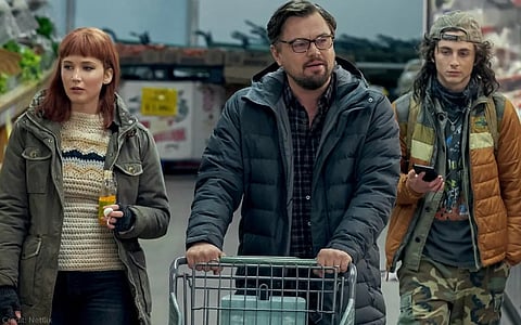 Don't Look Up is an excellent satire that explores the themes of an ignorant government, irresponsible media, and the perils of social media and how they have the potential to destroy the planet. The premise is simple enough. A Ph.D. student, Kate Dibiasky (Jennifer Lawrence), discovers a previously unknown comet at Michigan State University. Along with her Professor, Dr. Randall Mindy (Leonardo DiCaprio), she finds that it will collide with the planet in six months. Their struggle to convince the world of their discovery and the impending threat forms the rest of the movie.