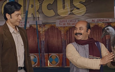 Some of the noticeable visual strategies Mukherji adopts on his own don't work. For instance, he alters the introduction of the tiger from the way it's described in the book, where it's part of a verbal exchange between Lalmohan babu and the chowkidar of the bungalow; a few paragraphs later, we get vignettes of reactions to the tiger by the local people of the town, such as the petrol pump owner's wife who saw it in their courtyard and fainted. What Mukherji does is cut the conversation short, extend the courtyard incident into a bigger scene, and goes straight to it. The call to show rather than tell is correct, an idea that must've sounded good on paper, but Mukherji makes the mistake of doing both. The conversation is unnaturally short, and it doesn't help that the CGI tiger is more believable than the fainting act by the actor playing the wife.