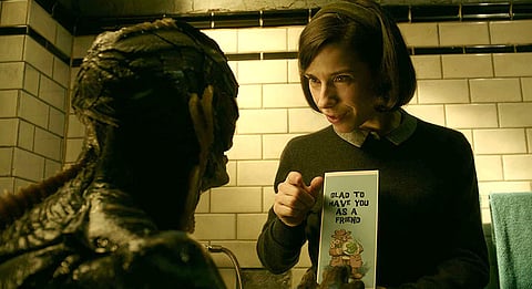 The Shape of Water is a love story set in the 1960s. The lovers are a mute cleaning lady and an amphibian man who has a muscled torso but also scales and gills. On paper, it sounds preposterous. On screen, it is poetry. Guillermo del Toro's film is fantastical, gorgeous, nutty and so moving that I wept.